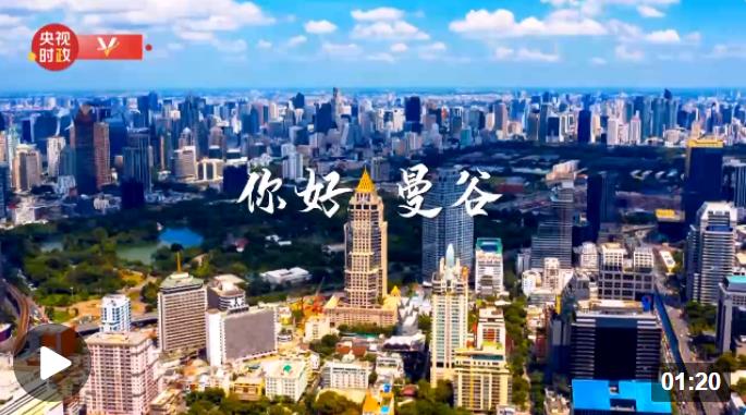 △曼谷街道,巨幅電子屏用中泰文字寫著“中泰一家親”。(總臺(tái)央視記者馬超拍攝)