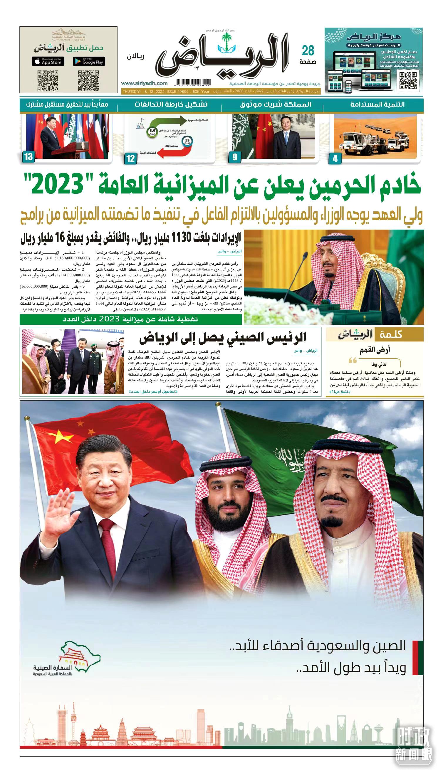 △沙特主流媒體頭版對習(xí)主席訪沙進(jìn)行報(bào)道。