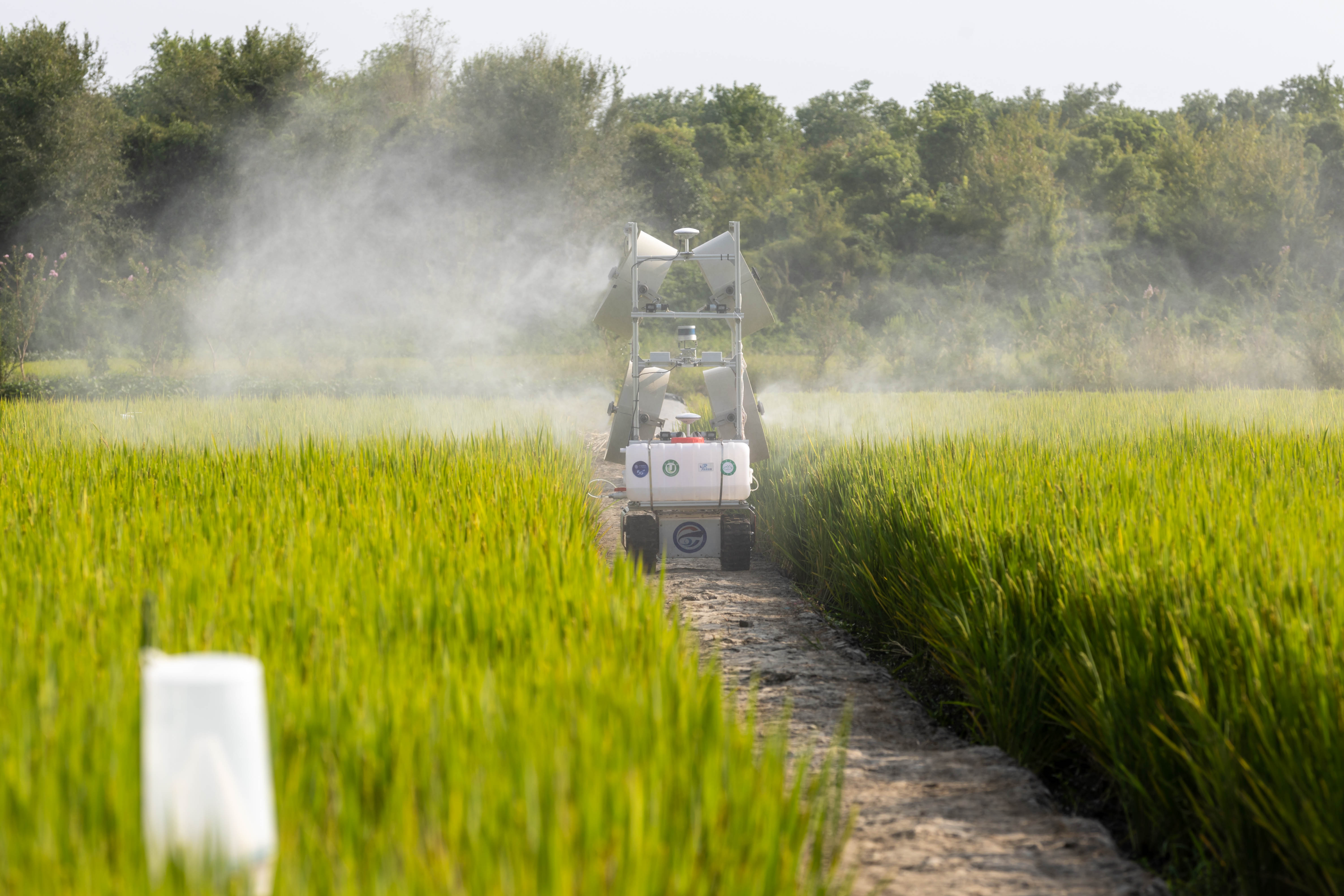 2022年9月22日,在上海土是寶數(shù)字農(nóng)場,智能變量噴霧機器人利用中國移動5G+北斗高精度定位,實現(xiàn)精準規(guī)劃的農(nóng)機作業(yè)范圍。新華社記者 王翔 攝
