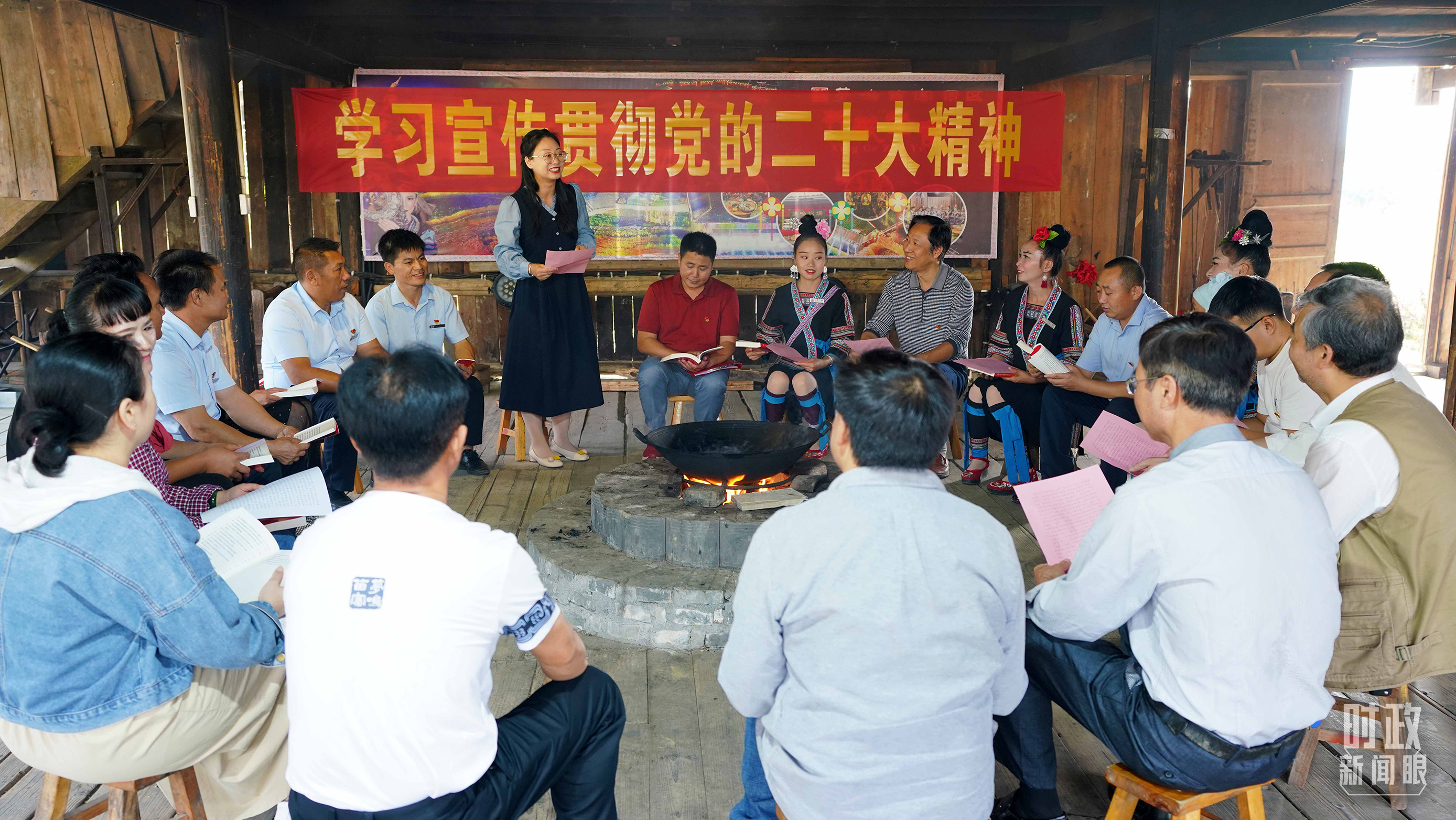△廣西柳州的紀檢監(jiān)察工作人員在當(dāng)?shù)孛缯c黨員干部群眾共同學(xué)習(xí)二十大精神。(圖/視覺中國)