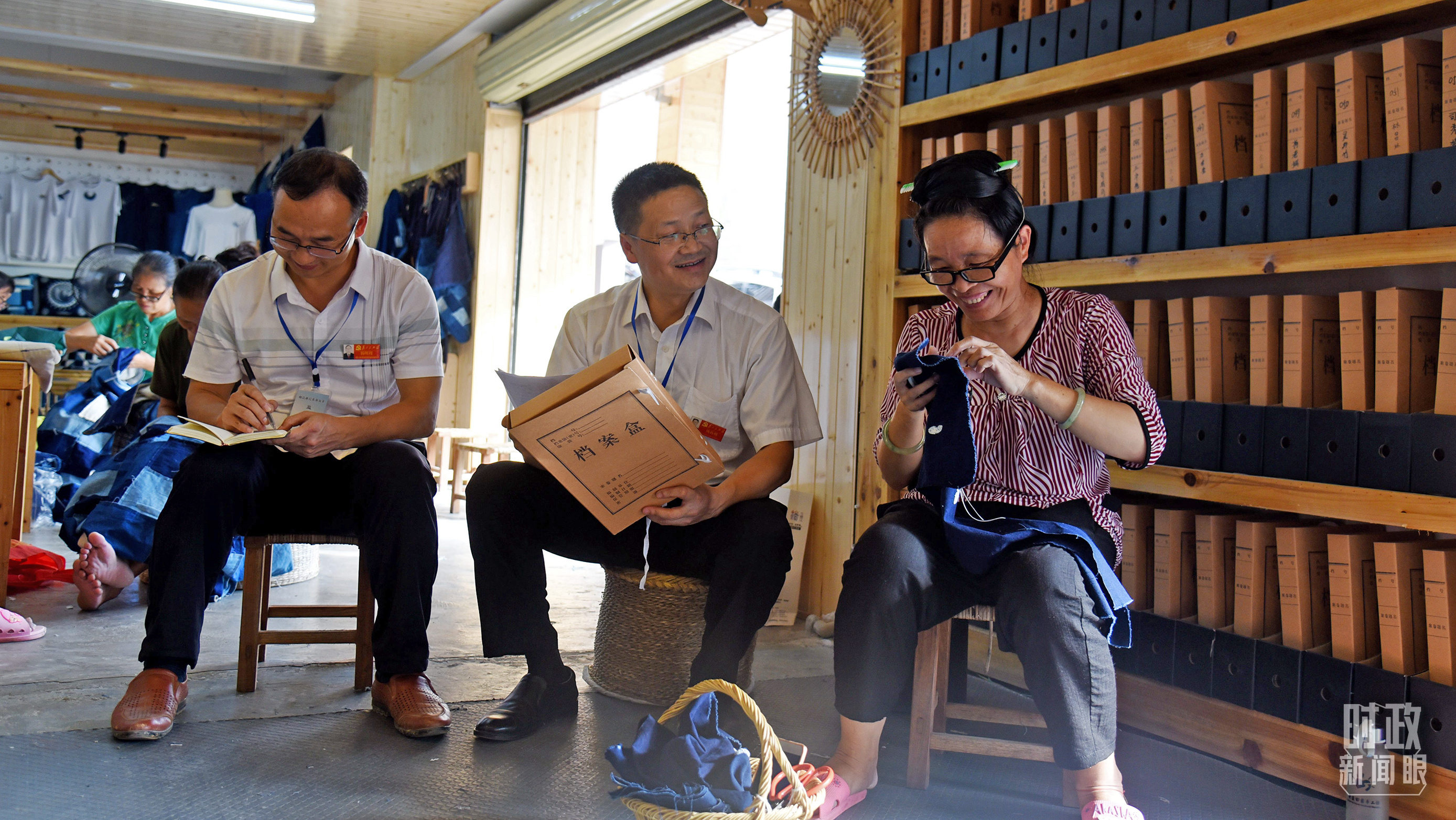 △臥龍社區(qū)扶貧車間里,貴州省榕江縣紀檢工作人員正在了解扶貧惠民政策的落實情況。(圖/視覺中國)