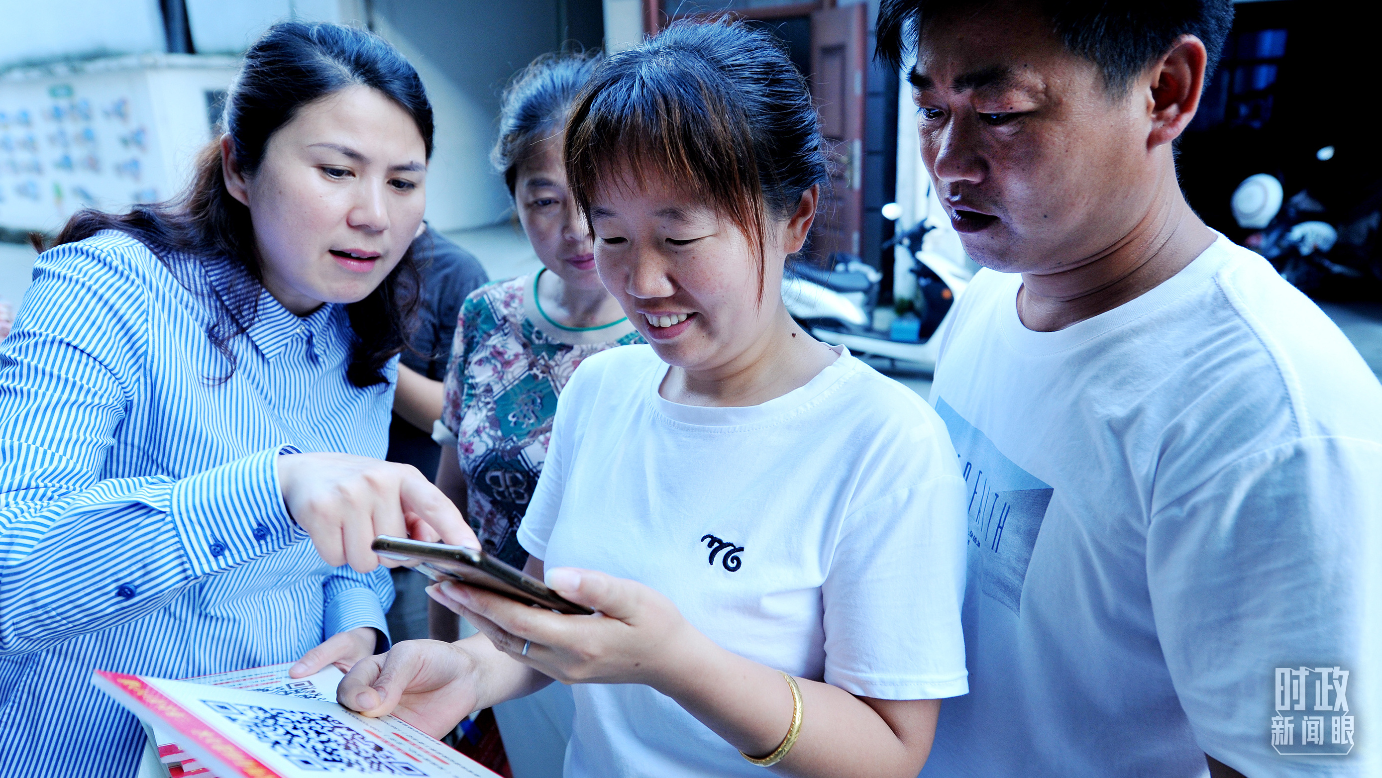 △江西上饒紀檢工作人員正在幫助村民使用手機掃描查詢村級三務(wù)“碼”上公開的內(nèi)容。(圖/視覺中國)