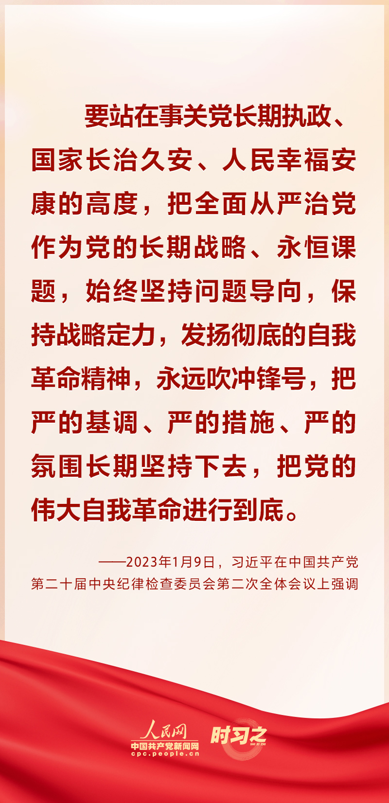 2023年1月9日上午,中共中央總書記、國家主席、中央軍委主席習(xí)近平在中國共產(chǎn)黨第二十屆中央紀律檢查委員會第二次全體會議上發(fā)表重要講話。習(xí)近平在講話中強調(diào)要“發(fā)揚徹底的自我革命精神”“把黨的偉大自我革命進行到底”。一直以來,習(xí)近平多次在重要場合對“自我革命”這個重要課題進行深入闡釋,一起學(xué)習(xí)領(lǐng)悟。