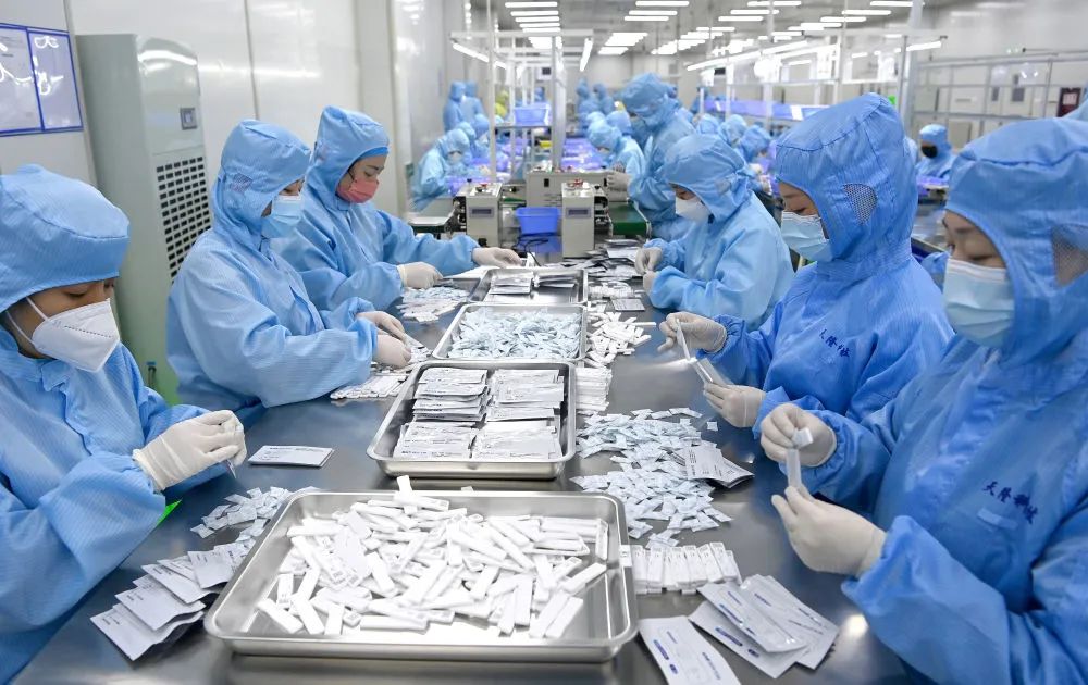 西安一家醫(yī)療器械企業(yè)的工作人員在生產(chǎn)抗原檢測(cè)試劑(2023年1月4日攝)。新華社記者 劉瀟 攝