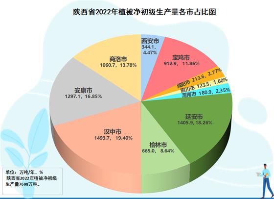 全省元生產(chǎn)力區(qū)域分析結(jié)果表明,在三大區(qū)域生態(tài)蛋糕越來(lái)越大的同時(shí),生態(tài)蛋糕的空間布局上與結(jié)構(gòu)發(fā)生變化,呈現(xiàn)黃河流域綠色崛起大趨勢(shì)。陜北榆林、延安兩市,生態(tài)空間8971.6萬(wàn)畝,占全省的39.6%;關(guān)中西安、寶雞、咸陽(yáng)、渭南、銅川五市生態(tài)空間4554.5萬(wàn)畝,占全省的29.2%;陜南漢中、安康、商洛三市生態(tài)空間9136.2萬(wàn)畝,占全省的40.2%。2022年,陜北兩市提供了2070.9萬(wàn)噸植被凈初級(jí)生產(chǎn)量,占全省的26.9%,比2012年的1714.1萬(wàn)噸增加313.8萬(wàn)噸,增長(zhǎng)18.3%,在全省份額上升了1.3個(gè)百分點(diǎn);關(guān)中五市提供了1775.1萬(wàn)噸的植被凈初級(jí)生產(chǎn)量,占全省的23.1%,比2012年的1524.3萬(wàn)噸250.8萬(wàn)噸,增長(zhǎng)16.4%,在全省份額上升了0.3個(gè)百分點(diǎn);陜南三市提供了3851.5萬(wàn)噸植被凈初級(jí)生產(chǎn)量,占全省的50.0%,比2012年的3462.7萬(wàn)噸增加388.8萬(wàn)噸,增長(zhǎng)11.2%,在全省份額下降了1.6個(gè)百分點(diǎn)。2012-2022年全省新增生態(tài)蛋糕996.4萬(wàn)噸,陜北兩市貢獻(xiàn)31.5%,關(guān)中五市貢獻(xiàn)29.5%,陜南三市貢獻(xiàn)39.0%。陜北、關(guān)中提供的生態(tài)蛋糕占全省的份額已由2012年的48.4%提高到2022年的50.0%。