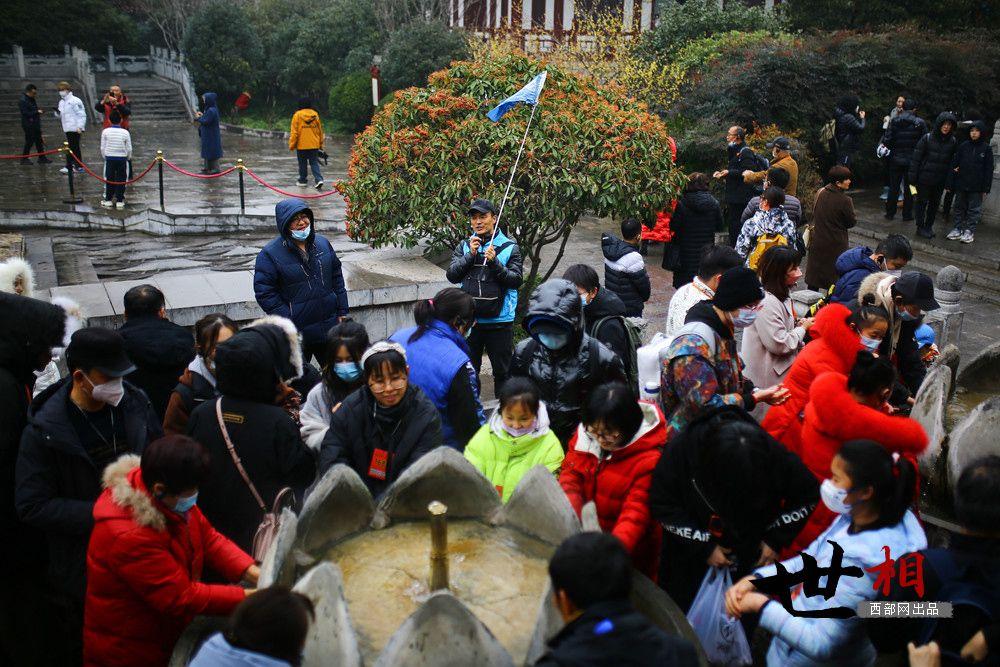 主菜通常是這款:“春寒賜浴華清池,溫泉水滑洗凝脂,在這里用溫泉水洗洗手,不僅對皮膚好,沾沾楊貴妃的貴氣,還能帶來好運(yùn),大家還可以拿礦泉水瓶接一杯,拿回去就是爽膚水啦。”如今,向溫泉遺址內(nèi)投硬幣等行為已被景區(qū)明確禁止,但“沾沾貴氣”這樣的互動體驗(yàn),往往會受到游客們的喜愛。“這水,千萬不能喝。”馬恒選補(bǔ)充道。