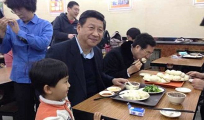 2013年12月,習(xí)近平出現(xiàn)在北京慶豐包子鋪。他自己排隊(duì)買包子、付款、端盤子、取包子的照片,瞬間傳遍網(wǎng)絡(luò)。他點(diǎn)的“二兩豬肉大蔥包,一碗炒肝,一份芥菜”,合計(jì)21元,被網(wǎng)民親切地稱為“主席套餐”。