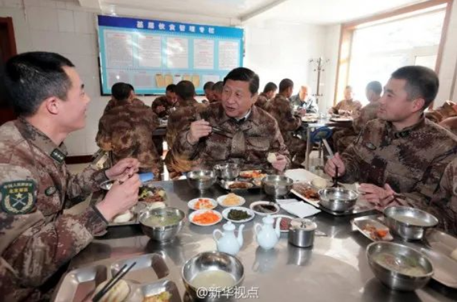2014年1月視察內(nèi)蒙古邊防哨所時(shí),習(xí)近平在邊防某團(tuán)一連食堂排隊(duì)就餐。眼尖的網(wǎng)友從新聞?wù)掌邪l(fā)現(xiàn),習(xí)近平的餐盤里有份家常菜:西紅柿炒雞蛋。