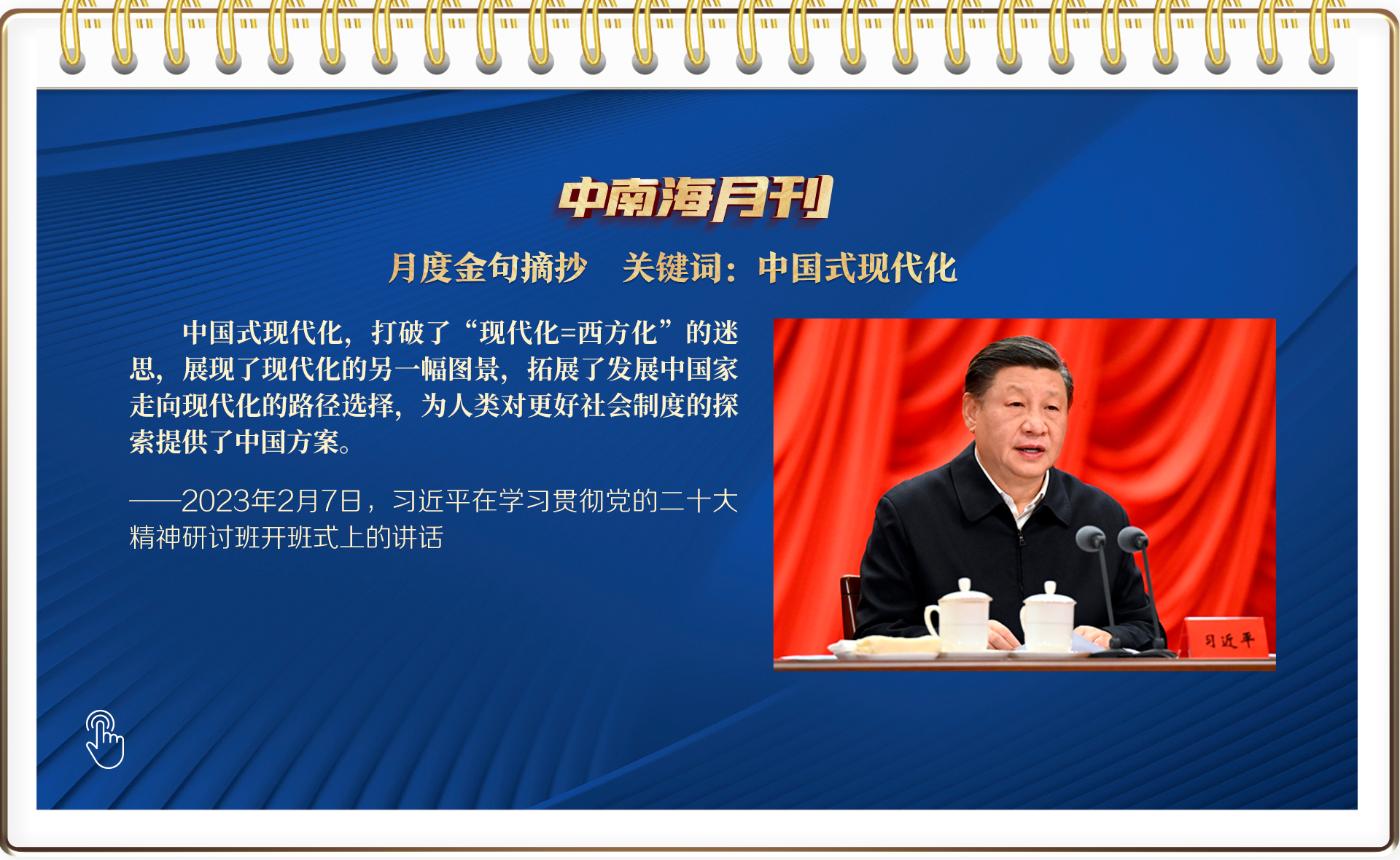 2月7日,習(xí)近平總書記第10次在專題研討班開班式上主講“新年第一課”。面對(duì)“關(guān)鍵少數(shù)”的“關(guān)鍵一課”,總書記從學(xué)習(xí)貫徹黨的二十大精神的關(guān)鍵點(diǎn)“破題”,深入闡釋了中國(guó)式現(xiàn)代化這一重大命題。