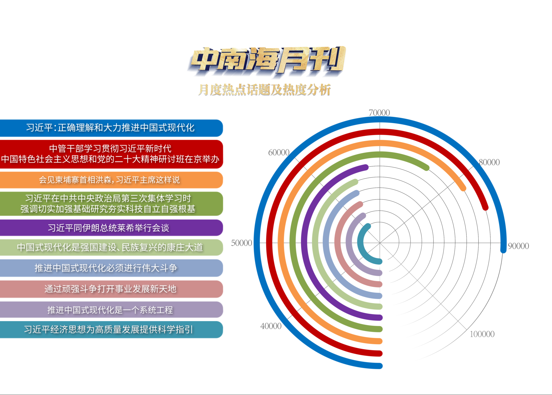 2023年是全面貫徹黨的二十大精神的開局之年,是實(shí)施“十四五”規(guī)劃承前啟后的關(guān)鍵一年,也是全面建設(shè)社會(huì)主義現(xiàn)代化國(guó)家開局起步的重要一年。央視網(wǎng)“智聞”系統(tǒng)提取分析2023年2月全網(wǎng)時(shí)政新聞熱點(diǎn)發(fā)現(xiàn),本月“學(xué)習(xí)貫徹黨的二十大精神研討班開班式”等相關(guān)話題備受網(wǎng)友關(guān)注。
