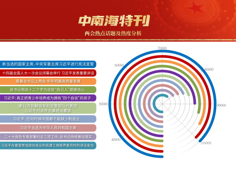 3月,世界目光,聚焦北京。近3000名中外記者采訪報(bào)道全國(guó)兩會(huì)。央視網(wǎng)“智聞”系統(tǒng)提取分析兩會(huì)期間全網(wǎng)時(shí)政新聞熱點(diǎn)顯示,習(xí)近平總書(shū)記的兩會(huì)關(guān)切吸引全網(wǎng)目光,新征程領(lǐng)路人的人民情懷成為網(wǎng)友“兩會(huì)印象”最深刻的主題之一。