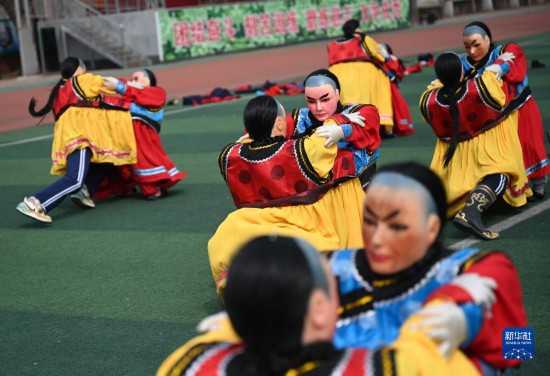 3月20日,隆化縣職教中心學生在練習國家級非遺項目“二貴摔跤”。