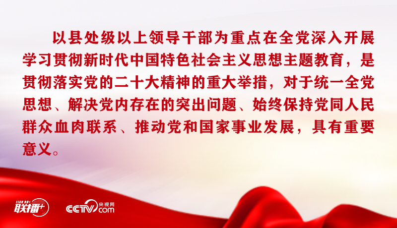 聯(lián)播+“這次主題教育是一件事關(guān)全局的大事,時(shí)間緊、任務(wù)重、要求高。”4月3日,學(xué)習(xí)貫徹習(xí)近平新時(shí)代中國特色社會(huì)主義思想主題教育工作會(huì)議在北京召開,總書記在講話中從新時(shí)代新征程黨和國家事業(yè)發(fā)展全局的戰(zhàn)略高度,深刻闡述開展主題教育的重大意義和目標(biāo)要求,對(duì)主題教育各項(xiàng)工作作出全面部署。