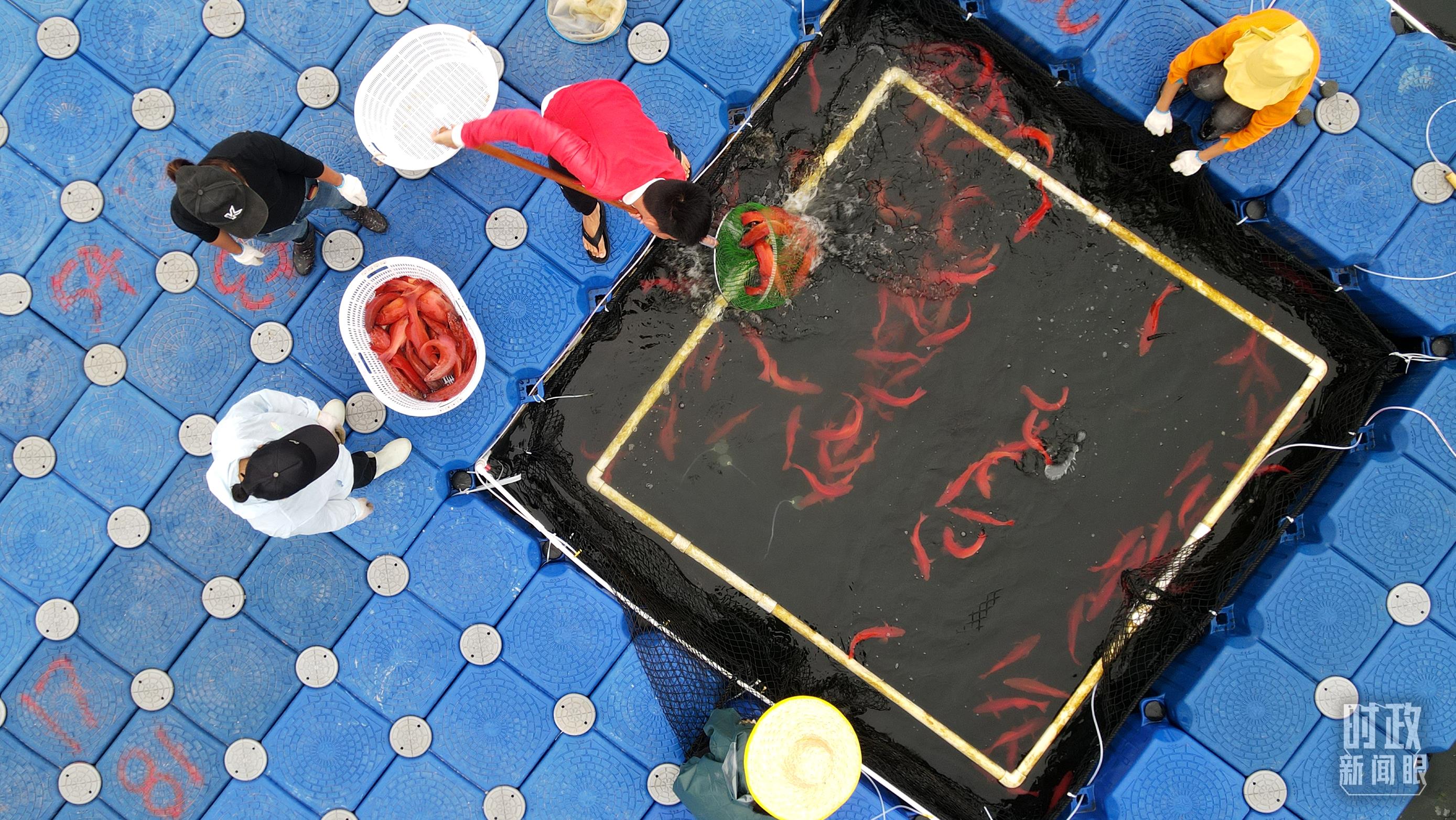 △浮筒式池塘網(wǎng)箱。(總臺央視記者劉琦拍攝)