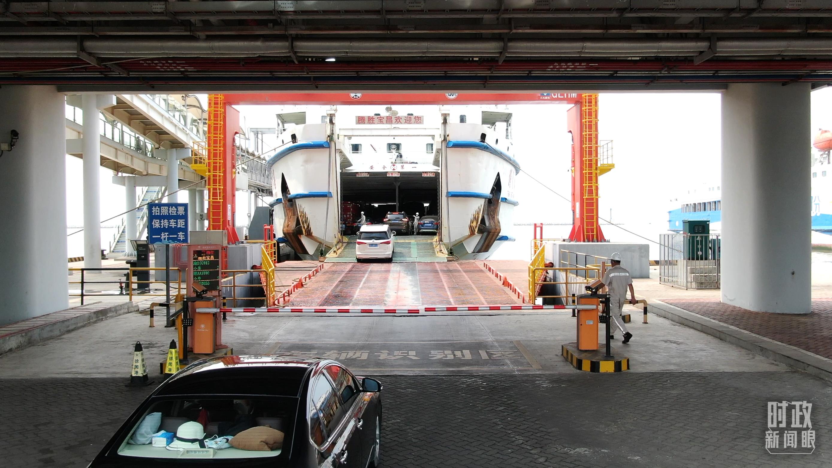 △車輛登船。(總臺(tái)央視記者鄧裕達(dá)拍攝)