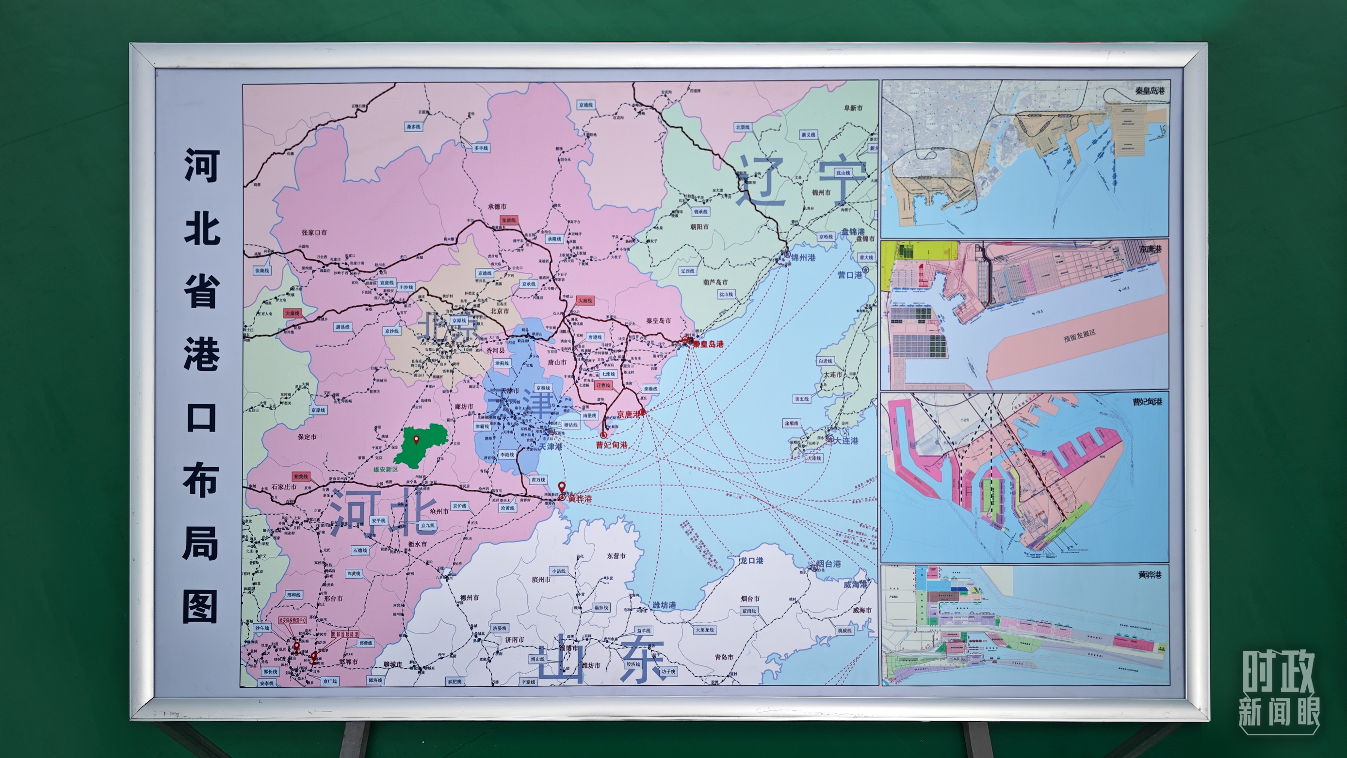 △河北省港口布局圖展示。(總臺央視記者彭漢明拍攝)