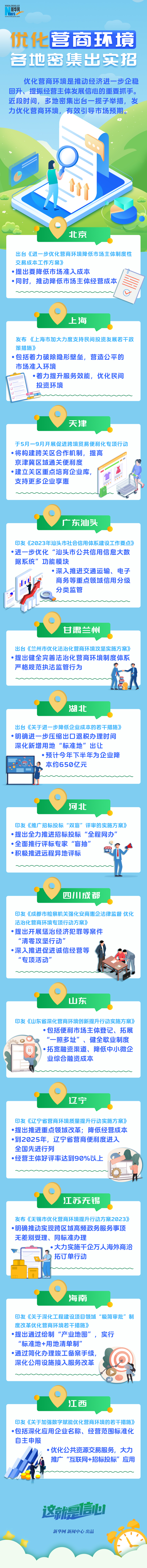優(yōu)化營商環(huán)境是推動(dòng)經(jīng)濟(jì)進(jìn)一步企穩(wěn)回升、提振經(jīng)營主體發(fā)展信心的重要抓手。近段時(shí)間,多地密集出臺一攬子舉措,發(fā)力優(yōu)化營商環(huán)境,有效引導(dǎo)市場預(yù)期。