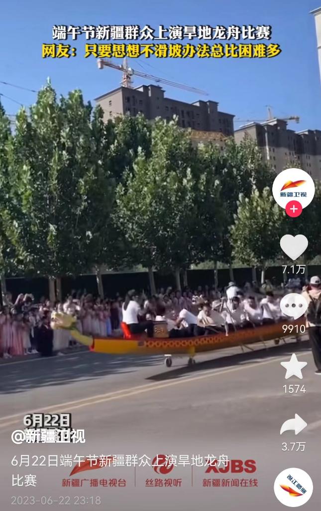 黃土高原的干旱土地里,“撐著走”的各類(lèi)旱地龍舟賽,與江南水鄉(xiāng)一樣,充滿(mǎn)了氣勢(shì)與歡樂(lè),網(wǎng)友妙評(píng)說(shuō):“這些快樂(lè)里沒(méi)有一點(diǎn)水分!”