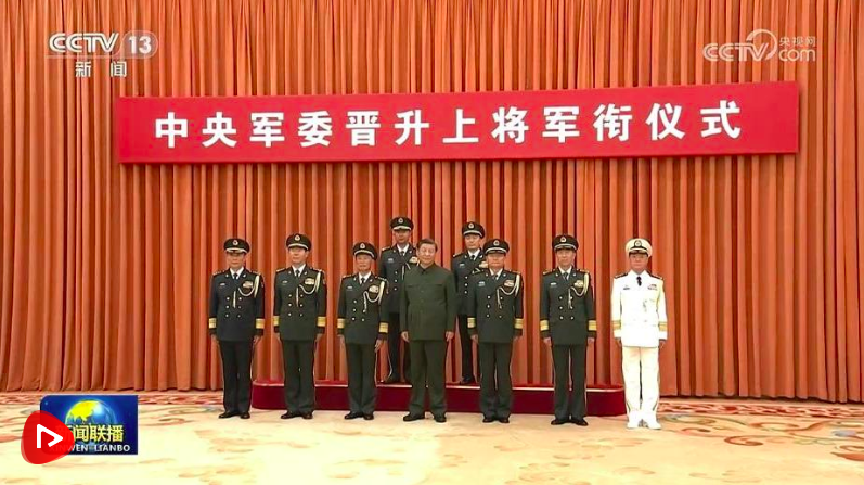 下午4時(shí)30分許,晉銜儀式在莊嚴(yán)的國歌聲中開始。中央軍委副主席張又俠宣讀了中央軍委主席習(xí)近平簽署的晉升上將軍銜命令。中央軍委副主席何衛(wèi)東主持晉銜儀式。