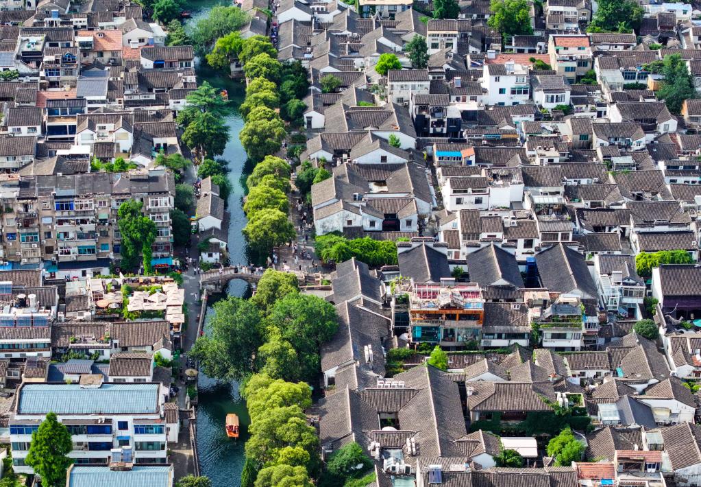7月3日拍攝的蘇州平江歷史文化街區(qū)(無人機照片)。新華社記者 李博 攝