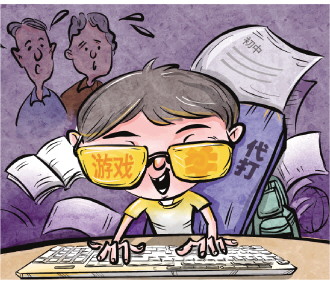可好景不長,“雙雙”因?yàn)榇蛴螒驎r(shí)間過長,學(xué)習(xí)成績一塌糊涂,經(jīng)常被老師拉去單獨(dú)談話。但她對(duì)老師的批評(píng)左耳朵進(jìn)右耳朵出,回家后仍是將書包一扔,熟練地啟動(dòng)電腦開始打游戲。