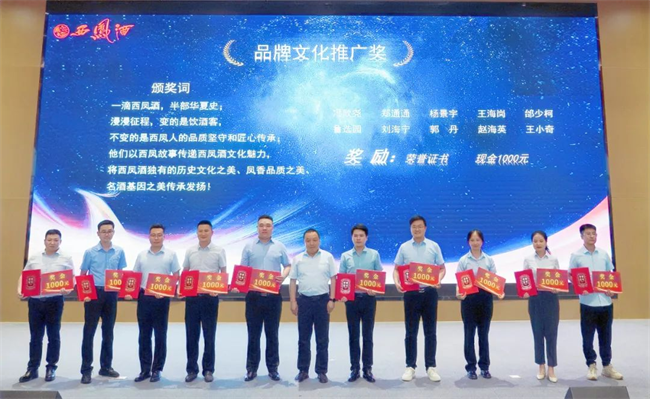 西鳳股份公司品牌管理部部長姜承輝為品牌文化推廣獎獲得者頒發(fā)榮譽證書與獎金