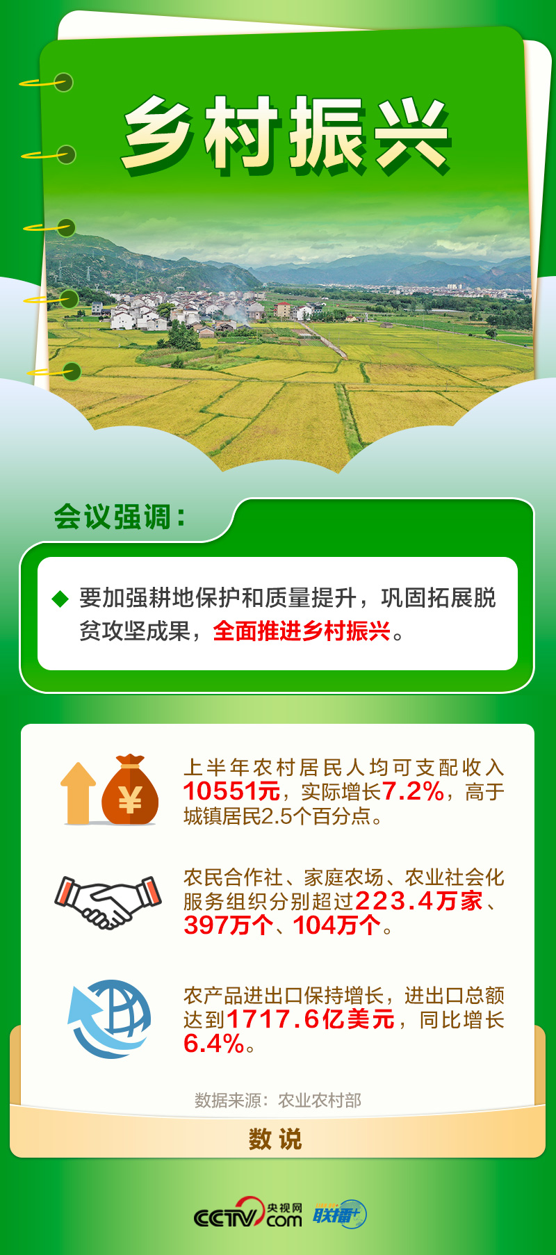 強(qiáng)國必先強(qiáng)農(nóng),農(nóng)強(qiáng)方能國強(qiáng)。全面建設(shè)社會(huì)主義現(xiàn)代化國家,最艱巨最繁重的任務(wù)依然在農(nóng)村,最廣泛最深厚的基礎(chǔ)依然在農(nóng)村。2023年中央一號(hào)文件提出,全面推進(jìn)鄉(xiāng)村振興,加快建設(shè)農(nóng)業(yè)強(qiáng)國。此次會(huì)議再次提出鞏固拓展脫貧攻堅(jiān)成果,全面推進(jìn)鄉(xiāng)村振興。