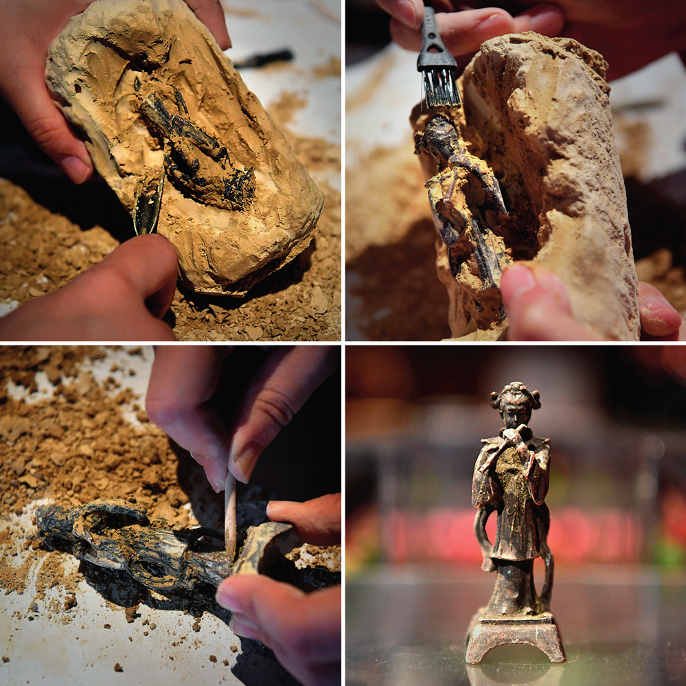 河南博物院推出的“考古盲盒”的“挖寶”過程(2022年5月17日攝) 李安攝/本刊