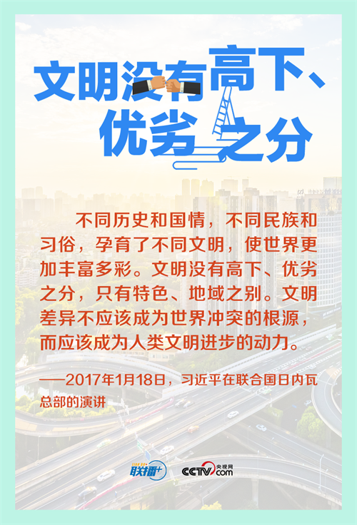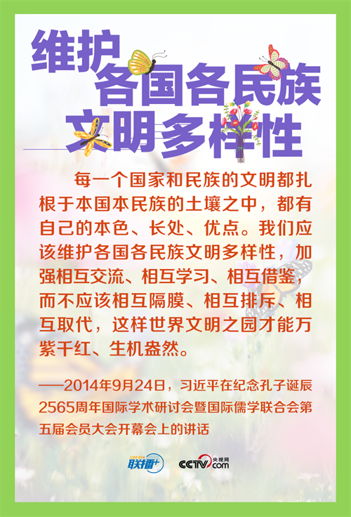 人類文明多樣性賦予這個(gè)世界姹紫嫣紅的色彩,多樣帶來交流,交流孕育融合,融合產(chǎn)生進(jìn)步。長(zhǎng)期以來,習(xí)近平主席在不同場(chǎng)合多次倡導(dǎo)尊重世界文明多樣性,推動(dòng)不同文明交流對(duì)話、和平共處、和諧共生。讓我們一起來學(xué)習(xí)。