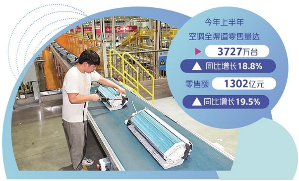 今年上半年,空調(diào)產(chǎn)品銷(xiāo)售量、銷(xiāo)售額增長(zhǎng)均在19%左右,為整個(gè)家電行業(yè)增長(zhǎng)最好的品類(lèi)。