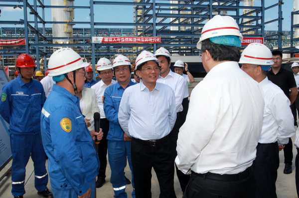 29日上午,孫金龍一行前往山東裕龍石化產(chǎn)業(yè)園,調(diào)研裕龍島煉化一體化項目。該項目位于煙臺市所轄龍口市,是山東省新舊動能轉換、現(xiàn)有地煉產(chǎn)能供給側改革升級的重點項目,規(guī)劃產(chǎn)能4000萬噸/年。孫金龍觀看了項目建設紀實片并參觀了裕龍石化展廳,聽取了項目有關介紹,隨后前往3號島和2號島實地查看一期建設情況,現(xiàn)場考察項目實施、設備工藝、環(huán)境安全等情況,仔細詢問污染物排放情況和廢水、廢氣及危險廢物處置措施。他強調(diào),推動發(fā)展方式綠色低碳轉型,產(chǎn)業(yè)綠色轉型升級是重點和關鍵。要健全生態(tài)環(huán)境法規(guī)政策標準,強化生態(tài)環(huán)境準入管理,加快促進產(chǎn)業(yè)結構調(diào)整優(yōu)化,通過高水平保護不斷塑造發(fā)展的新動能、新優(yōu)勢。要指導支持企業(yè)開展綠色低碳技術改造,嚴格落實環(huán)評審批要求和相關環(huán)保標準措施,確保環(huán)保設施建設到位、規(guī)范運行和達標排放,切實做好環(huán)境風險防范處置工作。