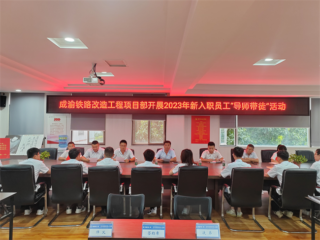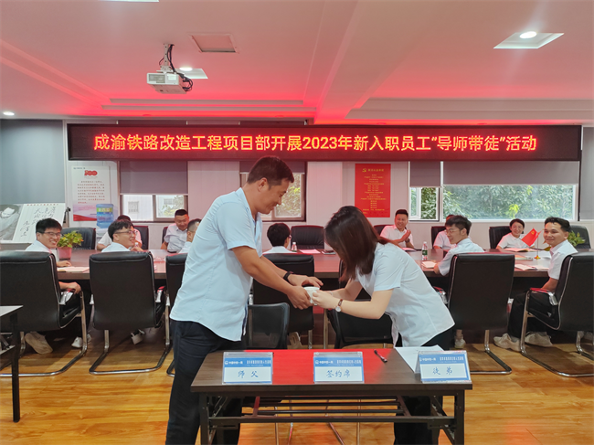 8月25日下午,中鐵一局七公司成渝項(xiàng)目部舉行導(dǎo)師帶徒結(jié)對(duì)儀式,項(xiàng)目領(lǐng)導(dǎo)班子、各部室負(fù)責(zé)人及主要管理人員出席活動(dòng)(重點(diǎn)對(duì)象為新入職大學(xué)生),支部書記王濤主持儀式。