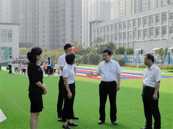 在新興幼兒園,亢振峰指出,學(xué)前教育階段是兒童身心發(fā)展的重要階段,讓孩子們就近入園、入優(yōu)質(zhì)園是廣大家長的關(guān)心期盼,更是黨委、政府義不容辭的責(zé)任。要切實抓好幼師隊伍建設(shè)、基礎(chǔ)設(shè)施提升,內(nèi)外兼修推動學(xué)前教育高質(zhì)量發(fā)展,用愛心、細(xì)心、耐心守護(hù)孩子們的快樂童年。