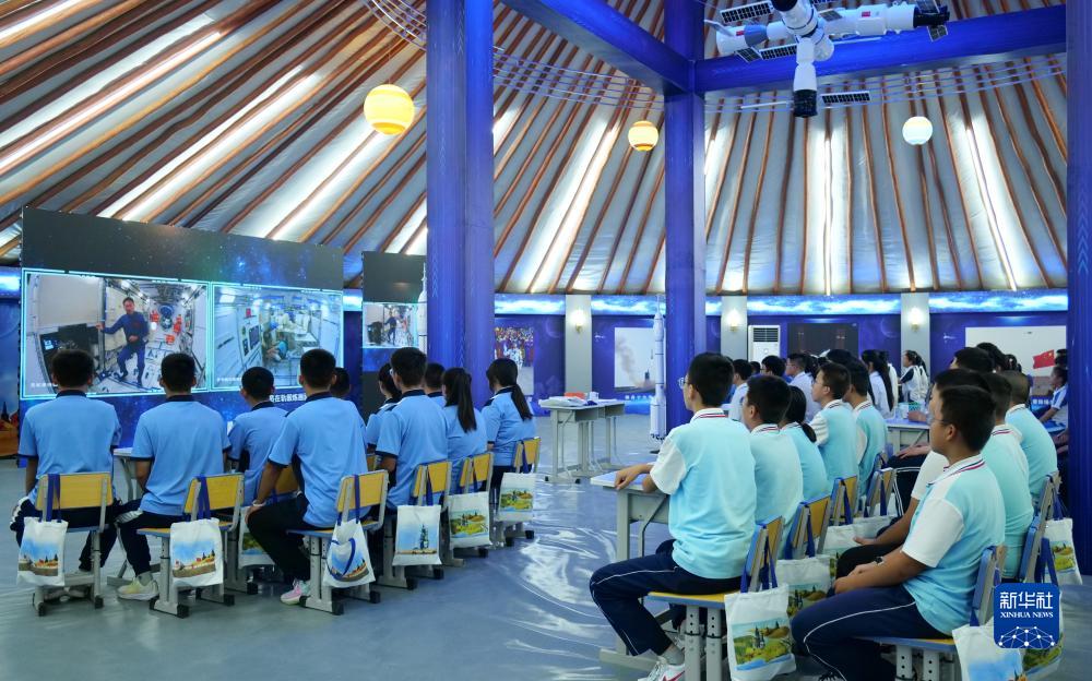 9月21日,在內(nèi)蒙古阿拉善盟額濟納旗,學(xué)生收看“天宮課堂”。新華社發(fā)(敖琪 攝)