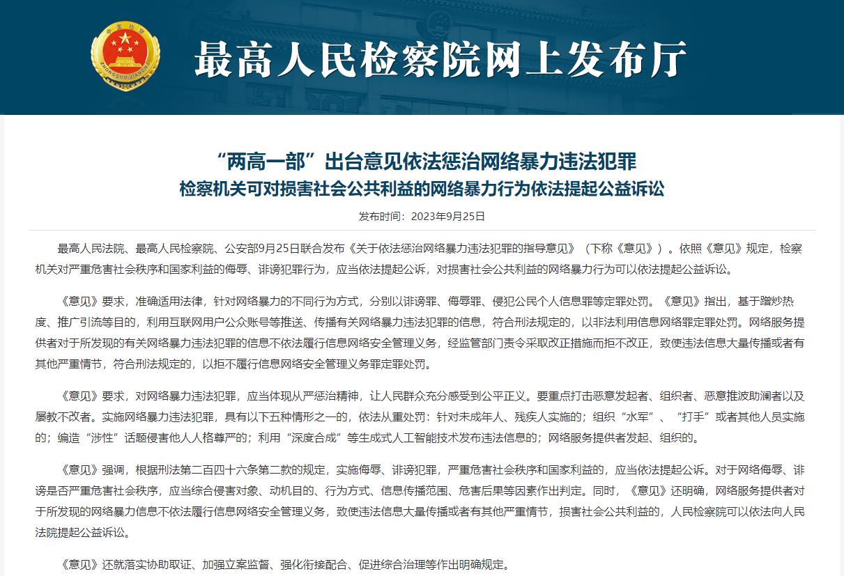 關(guān)于依法懲治網(wǎng)絡(luò)暴力違法犯罪的指導(dǎo)意見(jiàn)