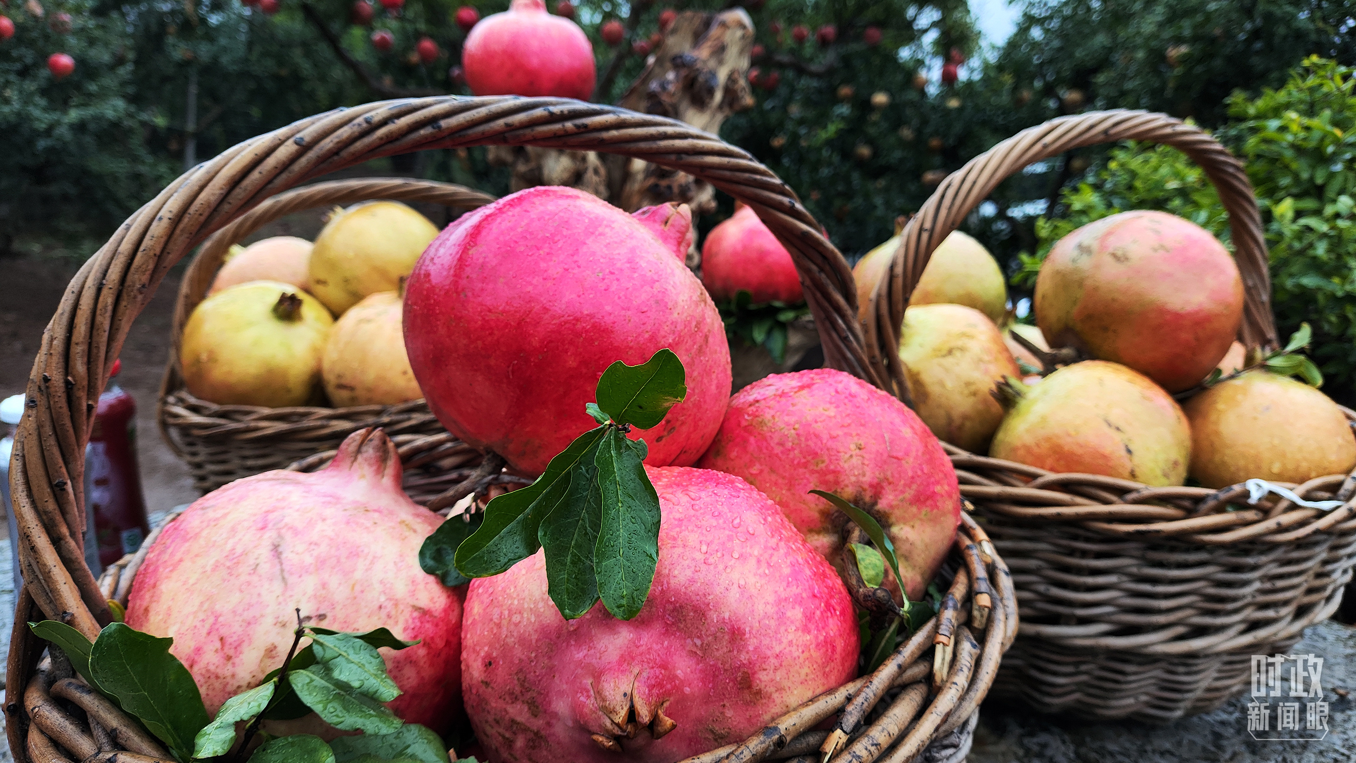 △種植園內(nèi)新鮮采摘的石榴。(總臺央視記者鐘信偉拍攝)