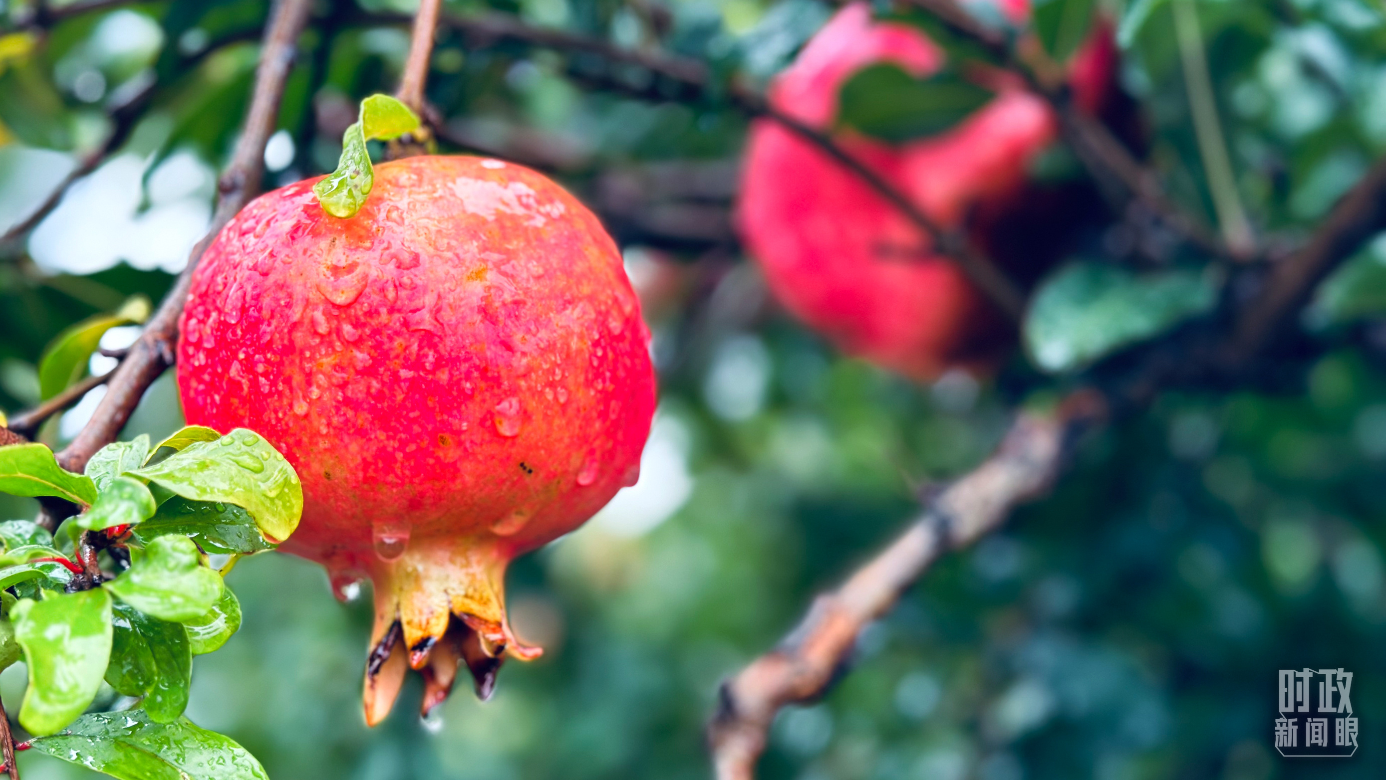 △一場秋雨過后,石榴更顯晶瑩。(總臺央視記者李輝、范一鳴拍攝)