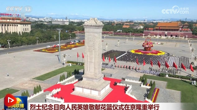 今天是我國(guó)第十個(gè)“烈士紀(jì)念日”。莊嚴(yán)的天安門廣場(chǎng)上,鮮艷的五星紅旗高高飄揚(yáng)。廣場(chǎng)中央,“祝福祖國(guó)”巨型花籃表達(dá)著對(duì)國(guó)家繁榮富強(qiáng)的美好祝福。人民英雄紀(jì)念碑巍然聳立,北側(cè)兩組花壇上白菊等鮮花組成的18個(gè)花環(huán),寄托著全體中華兒女對(duì)英烈的深情追思。