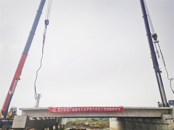 近日,肇慶新區(qū)臨港產(chǎn)業(yè)園波羅竇中橋首片預(yù)制箱梁架設(shè)完成,標(biāo)志中鐵一局一公司承建的肇慶臨港產(chǎn)業(yè)園項(xiàng)目施工生產(chǎn)按下“快進(jìn)鍵”。