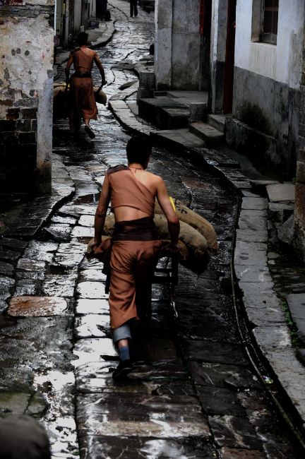 湖北赤壁羊樓洞古鎮(zhèn)是萬(wàn)里茶道的重要生產(chǎn)加工集散中心。生產(chǎn)的磚茶就是沿著彎曲的石板路,用獨(dú)輪雞公車銷往世界各地。