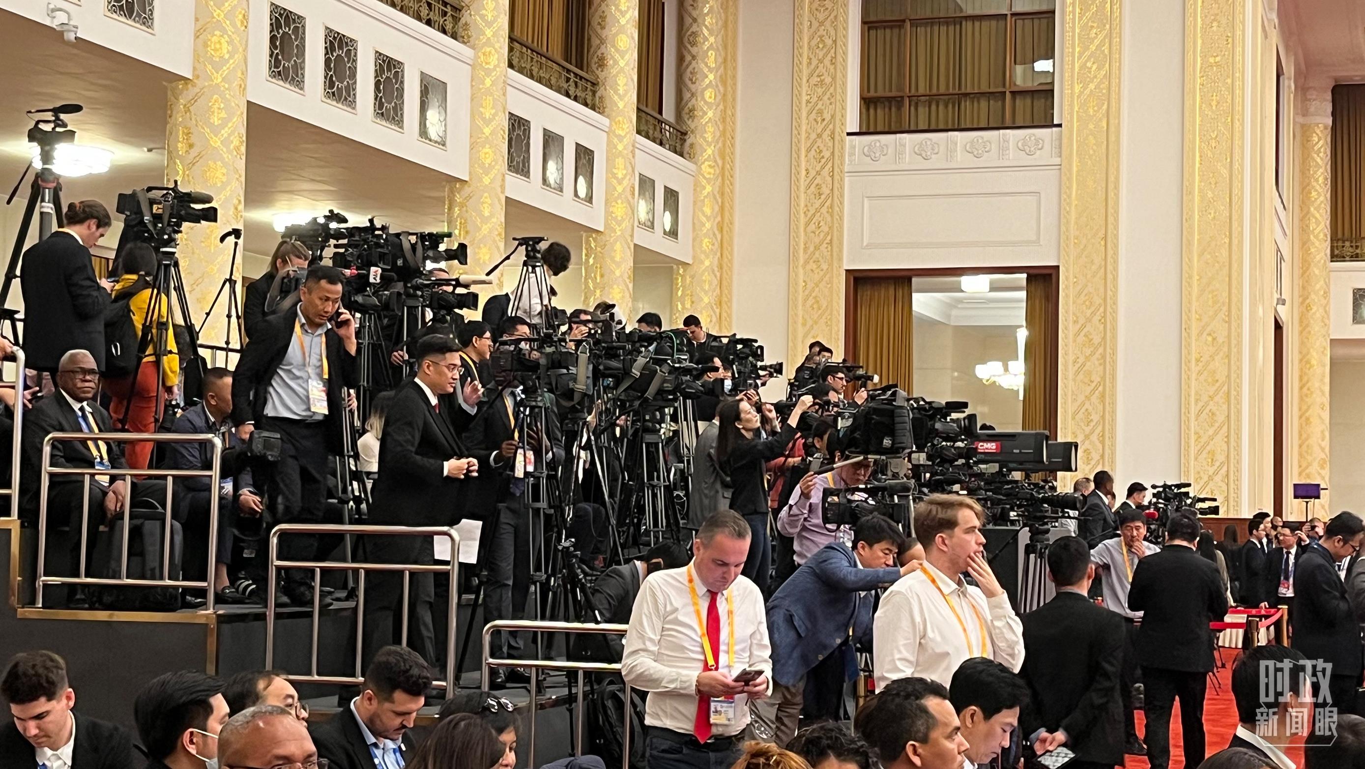 △現(xiàn)場(chǎng)報(bào)道開幕式的各國(guó)記者。(總臺(tái)央視記者金雨秋拍攝)