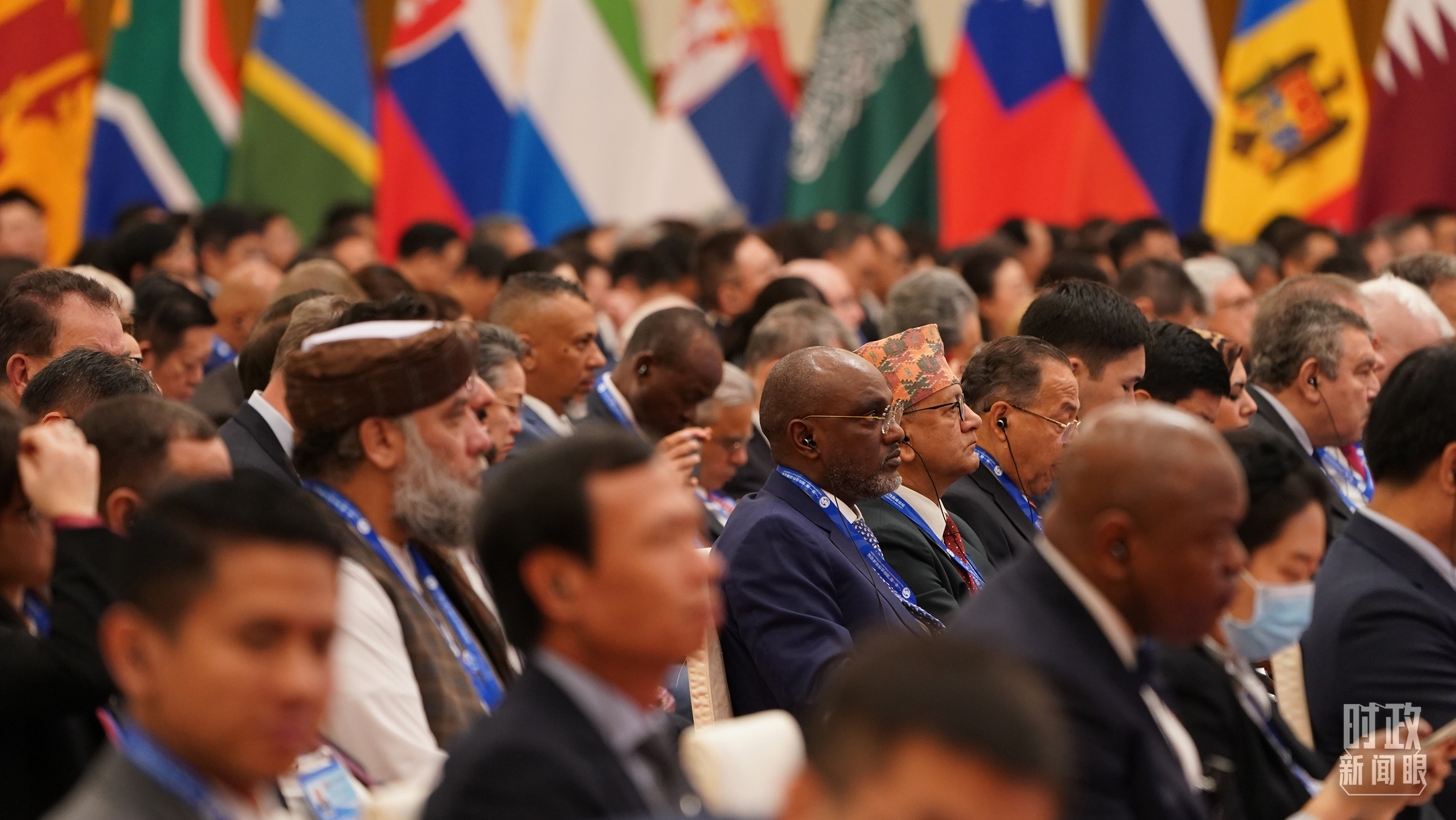 紅毯鋪地,鮮花點(diǎn)綴。150多面共建“一帶一路”國(guó)家國(guó)旗和聯(lián)合國(guó)旗,整齊分列會(huì)場(chǎng)兩側(cè)。