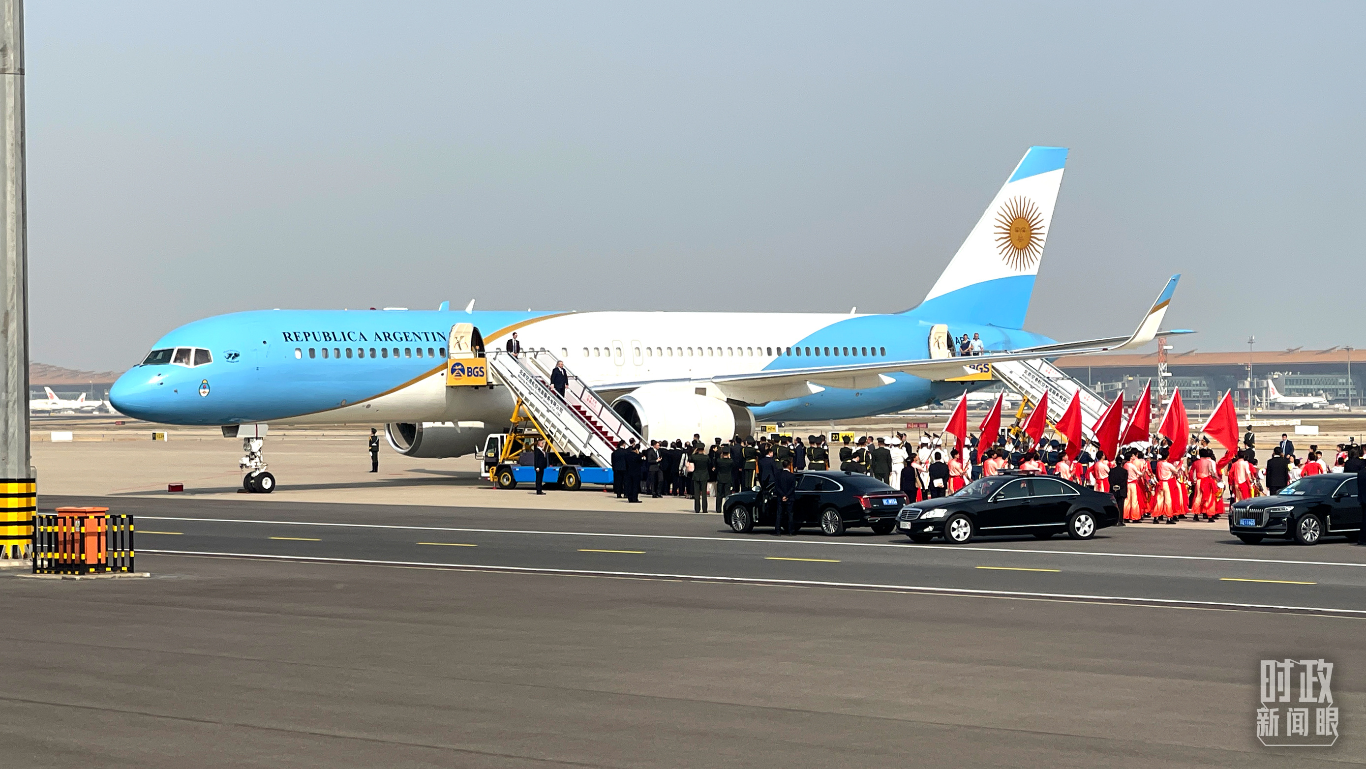 △10月17日中午,阿根廷總統(tǒng)費(fèi)爾南德斯乘飛機(jī)抵達(dá)北京。(總臺(tái)央視記者周錕拍攝)