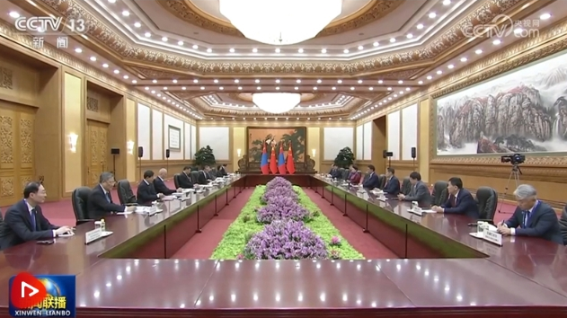10月19日上午,國家主席習近平在人民大會堂會見來華出席第三屆“一帶一路”國際合作高峰論壇的蒙古國總統(tǒng)呼日勒蘇赫。