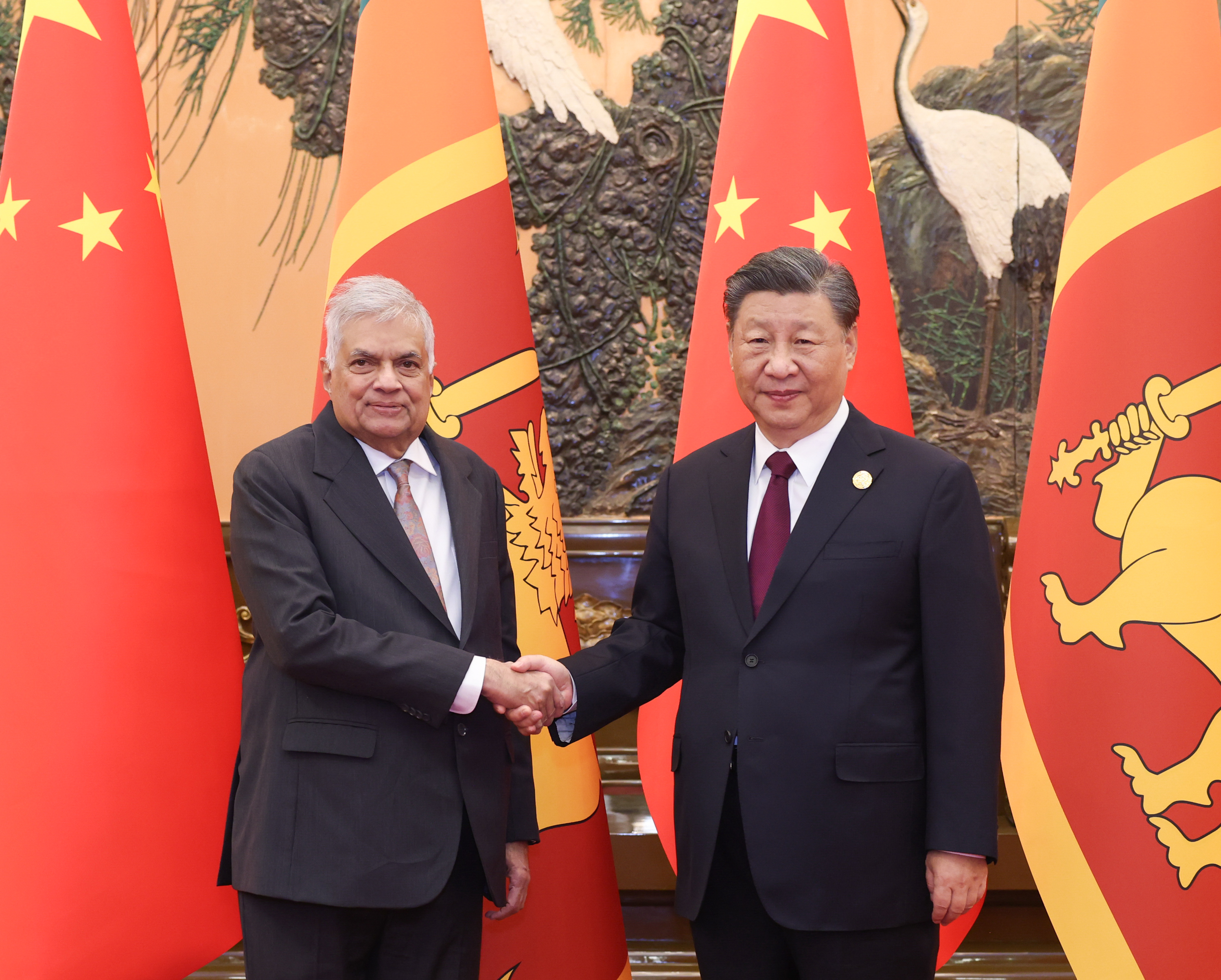 10月20日上午,國家主席習(xí)近平在人民大會堂會見來華出席第三屆“一帶一路”國際合作高峰論壇的斯里蘭卡總統(tǒng)維克拉馬辛哈。