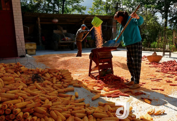 西部決策網(wǎng)訊(記者帥華鋒 通訊員 余小芹 余雅各 李三良)田疇沃野好“豐”光,遍地金黃糧滿(mǎn)倉(cāng)。金秋時(shí)節(jié),甘肅隴南兩當(dāng)縣西坡鎮(zhèn)田間地頭的玉米喜獲豐收,村民們正利用晴好天氣采收玉米,忙得不亦樂(lè)乎,家家戶(hù)戶(hù)房前屋后堆滿(mǎn)了金黃的玉米,洋溢著豐收喜悅的笑臉與收獲的金黃色玉米交相輝映,勾勒出一幅動(dòng)人的金秋豐收?qǐng)D。