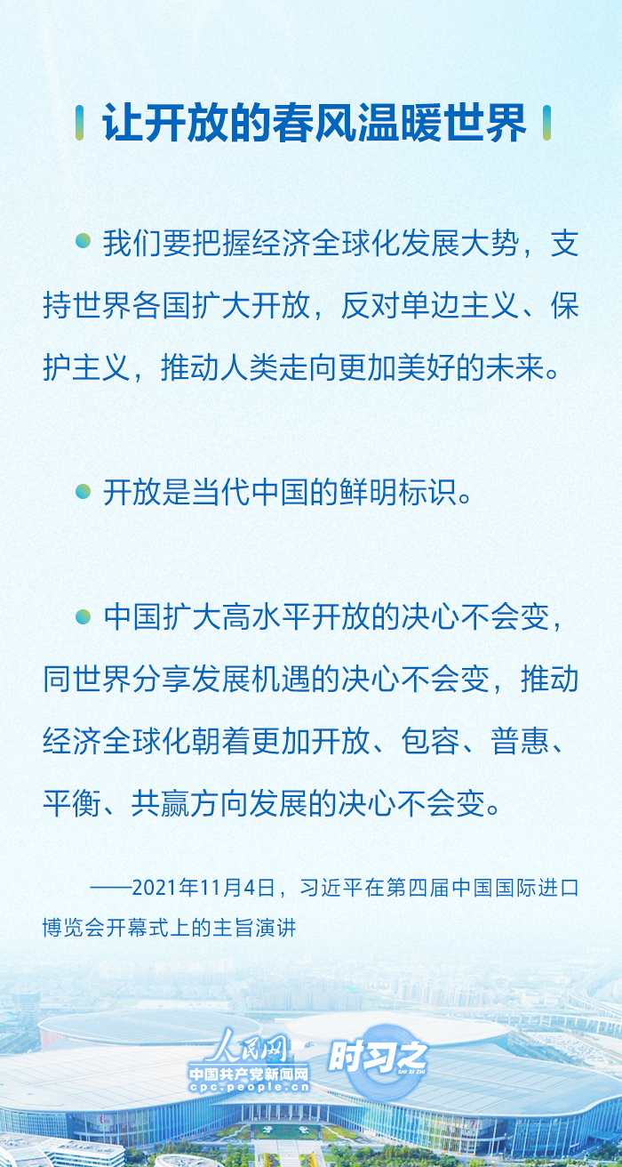 自首屆以來,國家主席習近平連續(xù)五屆出席進博會開幕式并發(fā)表重要講話,宣布中國重大開放舉措,展示中國堅定開放決心。