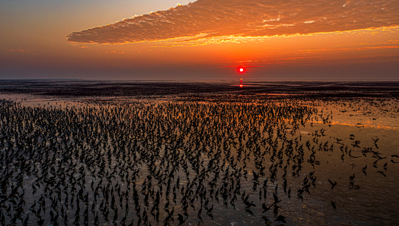 山東黃河三角洲自然保護(hù)區(qū)內(nèi)的候鳥集群 張曉龍攝(國(guó)家林草局供圖)
