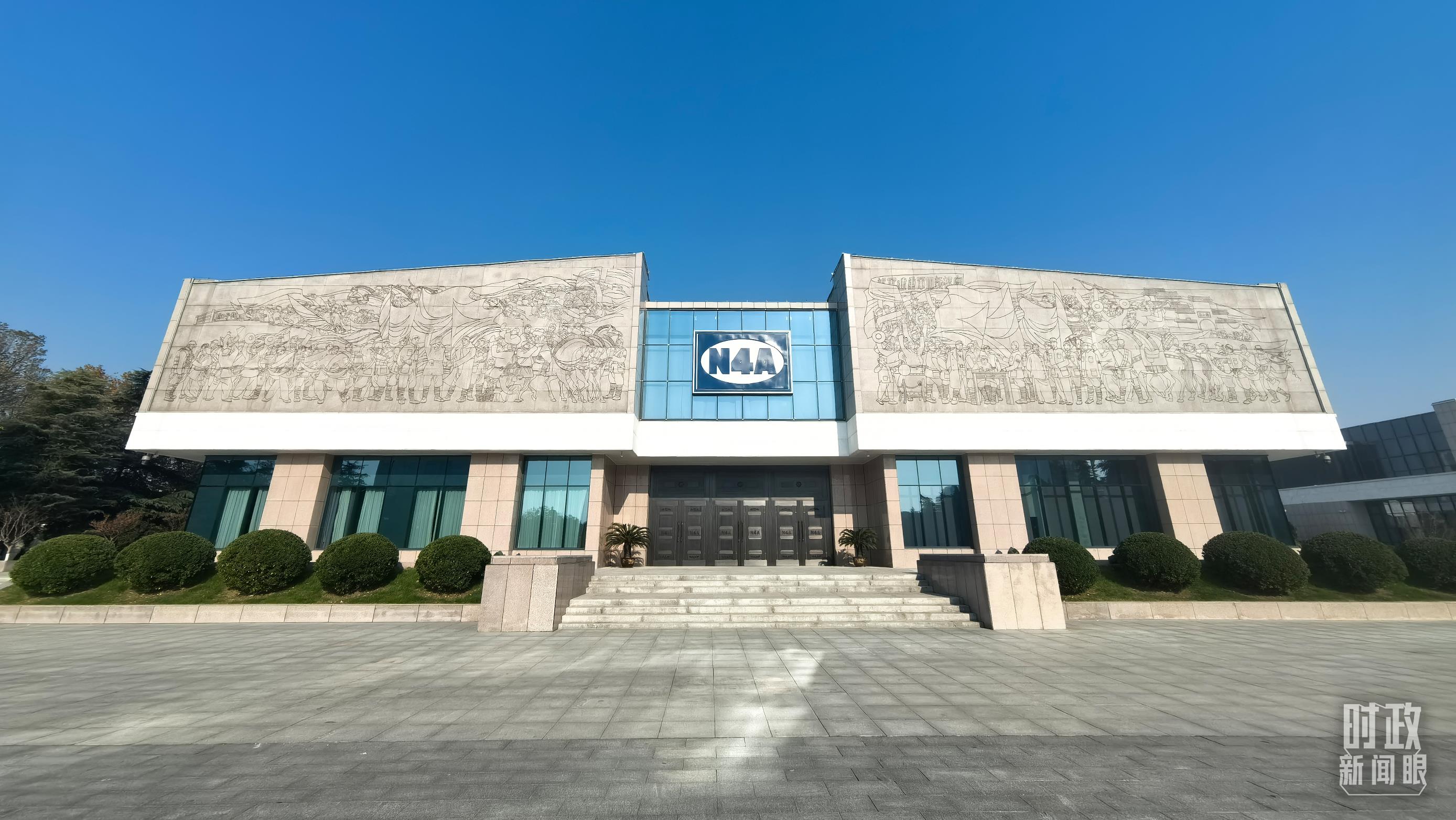 新四軍紀念館于1986年10月建成開放,主館區(qū)的主體建筑外形呈“四”字形設(shè)計,“N4A”臂章鑲嵌在主建筑正門上方,“N4A”是新四軍的英文縮寫。主建筑上方東、西兩側(cè)分別建有兩面旗形花崗石陰雕畫,再現(xiàn)了“兩軍會師”和“重建軍部”的歷史場景。
