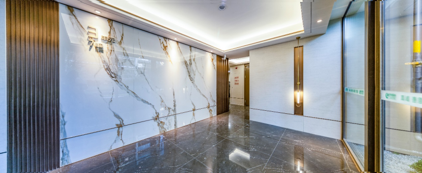 更值得一提的是,綠城·桂語(yǔ)朝陽(yáng)項(xiàng)目不僅提前交付,還在公區(qū)品質(zhì)、園林景觀等多個(gè)方面進(jìn)行了升級(jí),如入戶單元精裝大堂,以卡拉卡金巖板背景墻取代此前的瓷磚,雖然成本上升,但高級(jí)質(zhì)感墻面,結(jié)合跌級(jí)吊頂搭配金屬嵌條,與900x1800大規(guī)格墻面瓷磚,高級(jí)灰色系地面瓷磚搭配,所呈現(xiàn)出的奢雅入戶感,迎面而來(lái)。